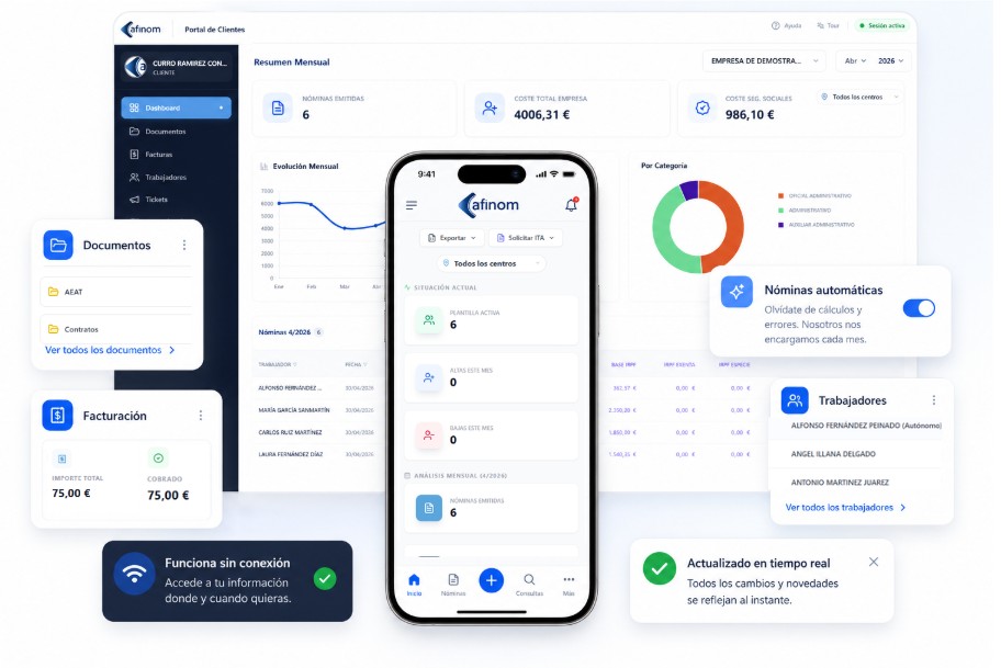 Además, ponemos a tu disposición un Espacio de Cliente exclusivo y personalizado. Aquí podrás acceder a toda tu información fiscal, contable y laboral de manera centralizada, con solo un clic.